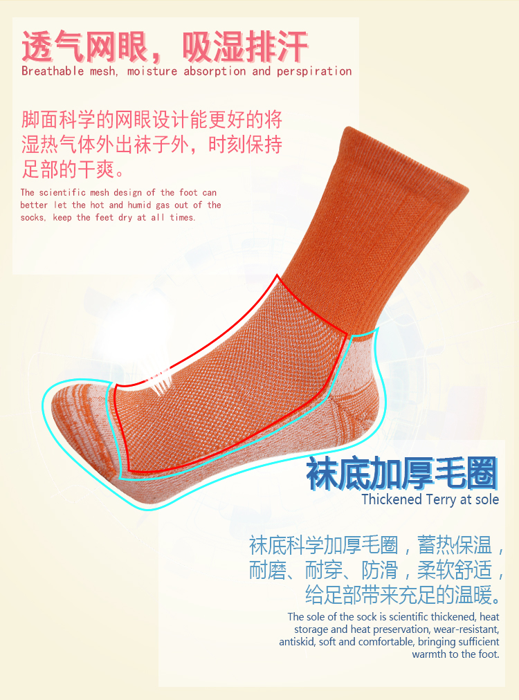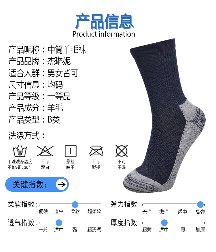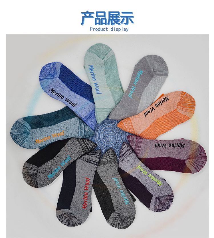 跨境量大加厚美利奴羊毛登山运动袜子男女吸汗抗菌防臭保暖中筒袜