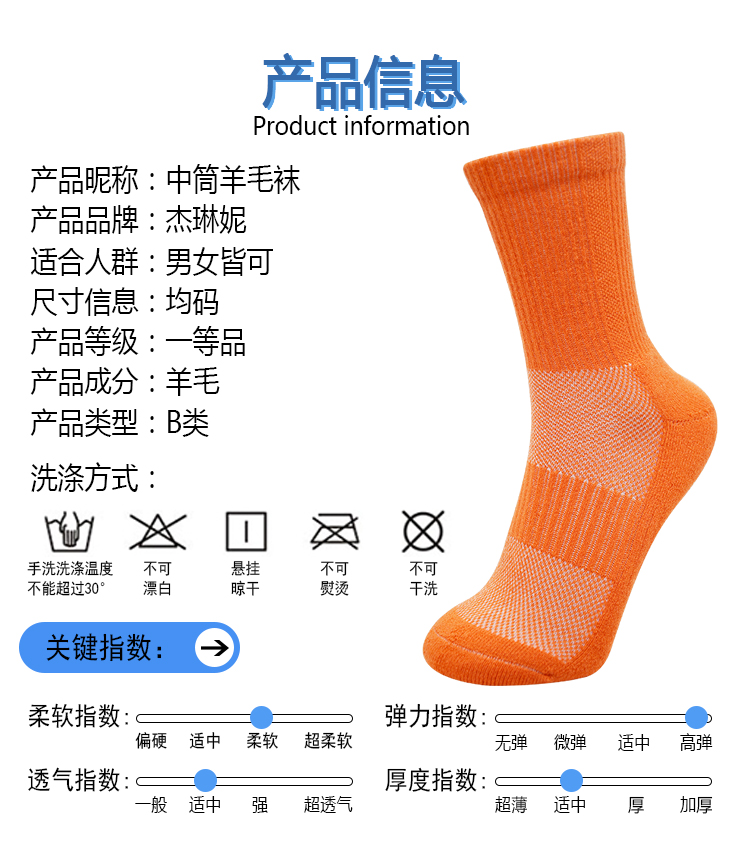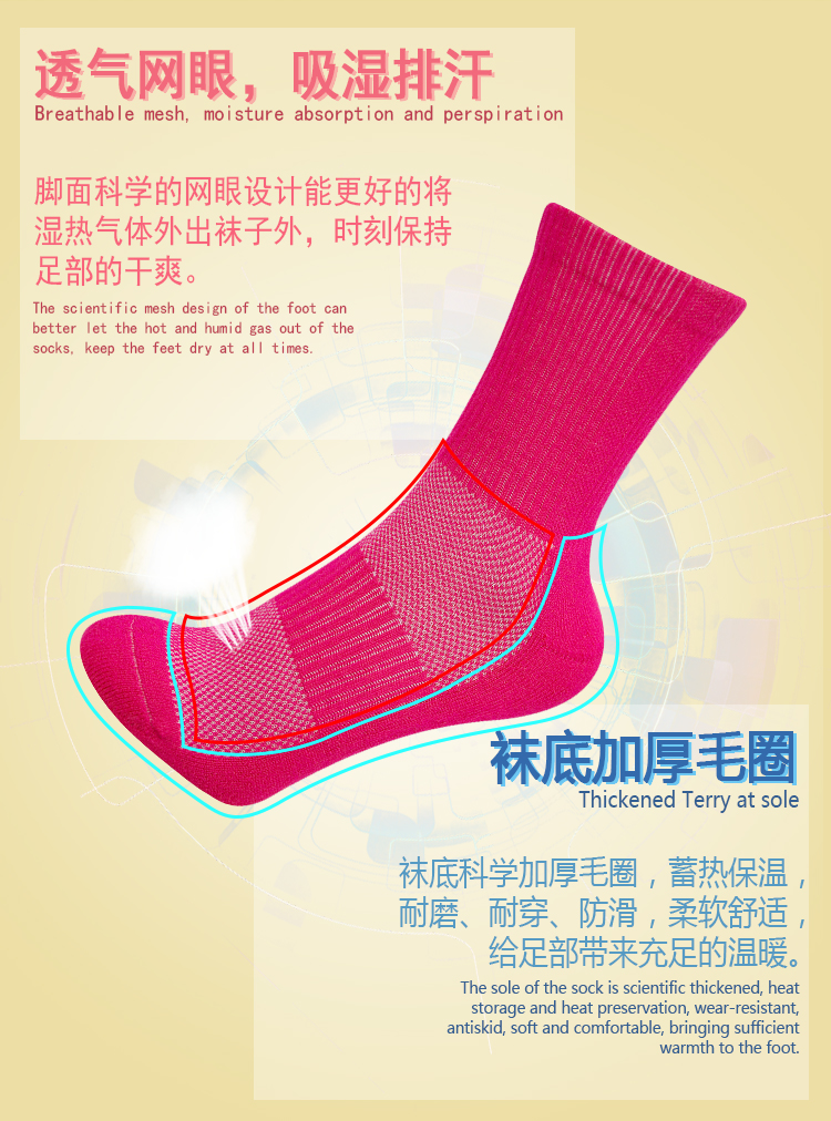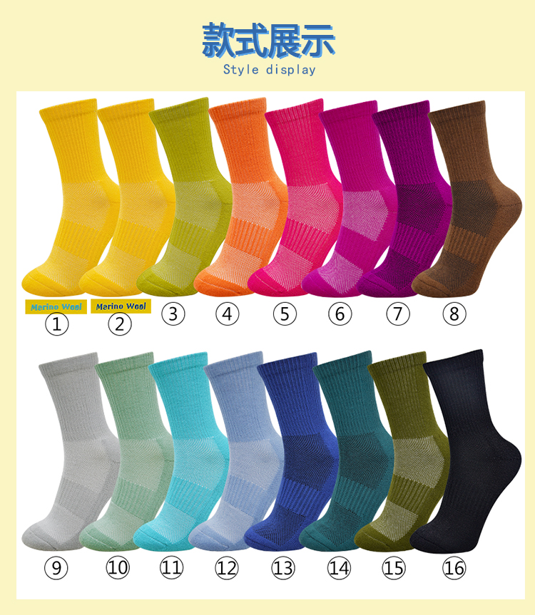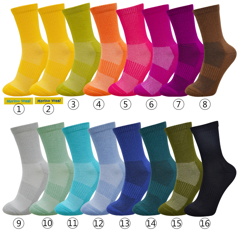 Premium Merino wool socks, mid-calf fleece bottom multi-color sports and casual socks