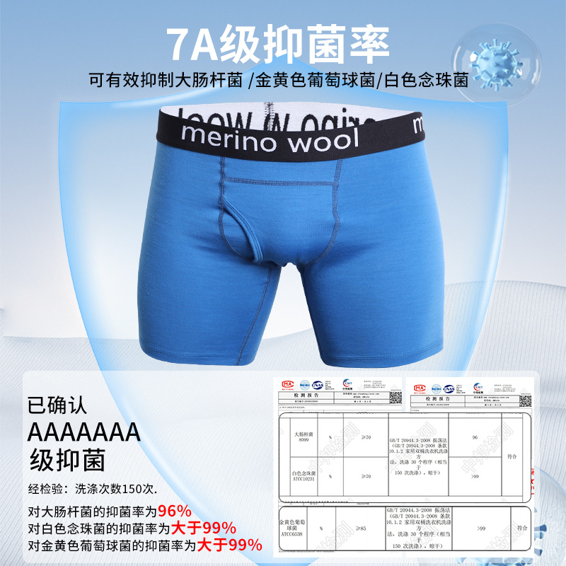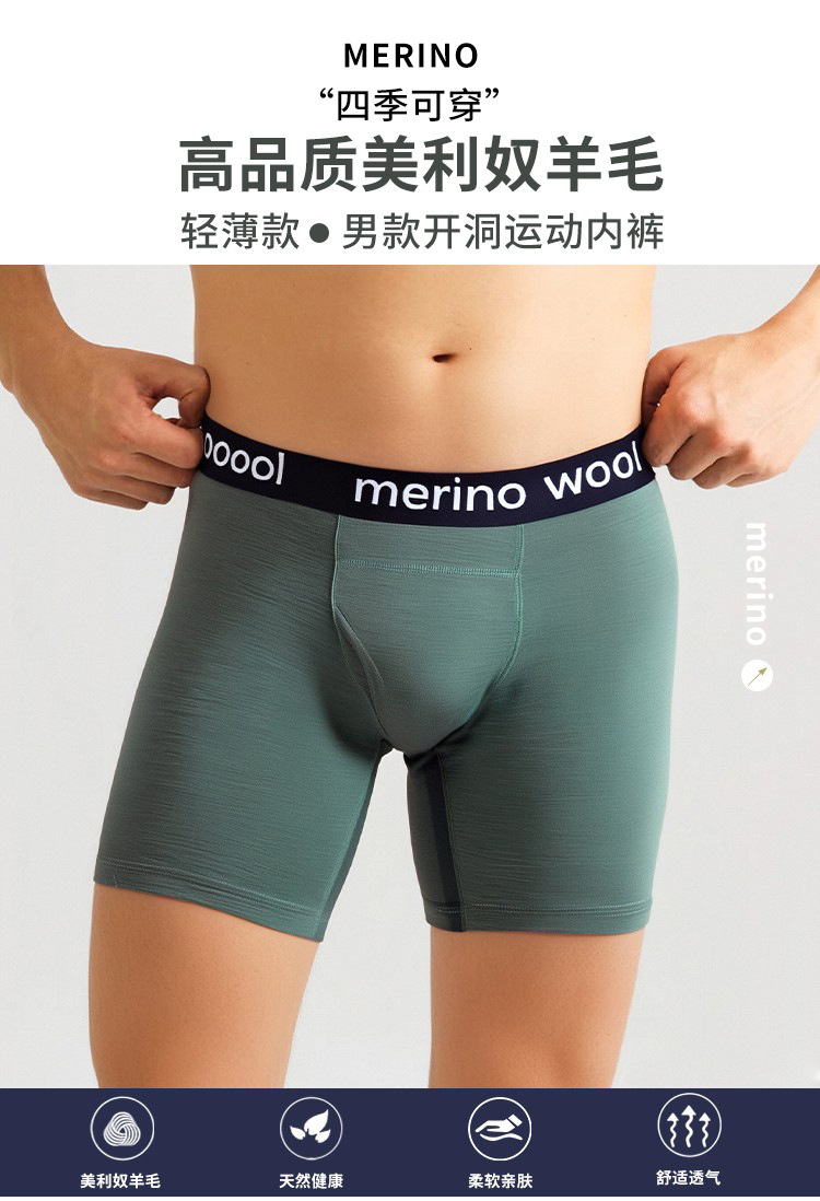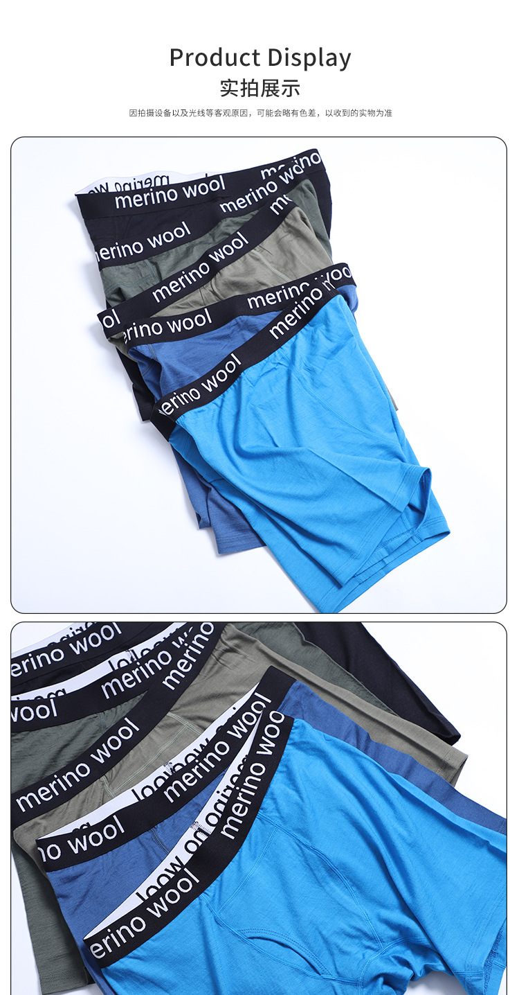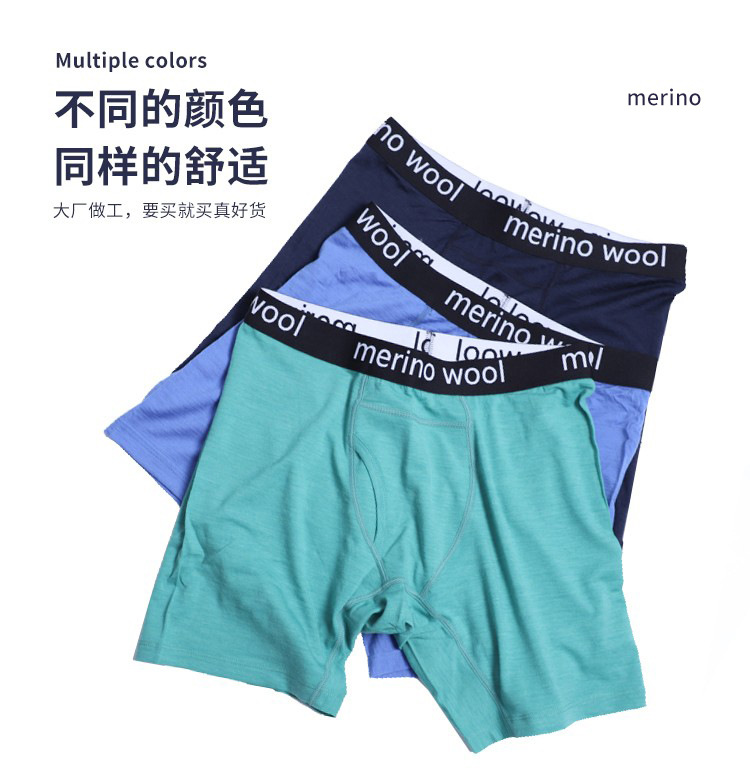 Merino wool men's sports underwear four-corner antibacterial flat underwear