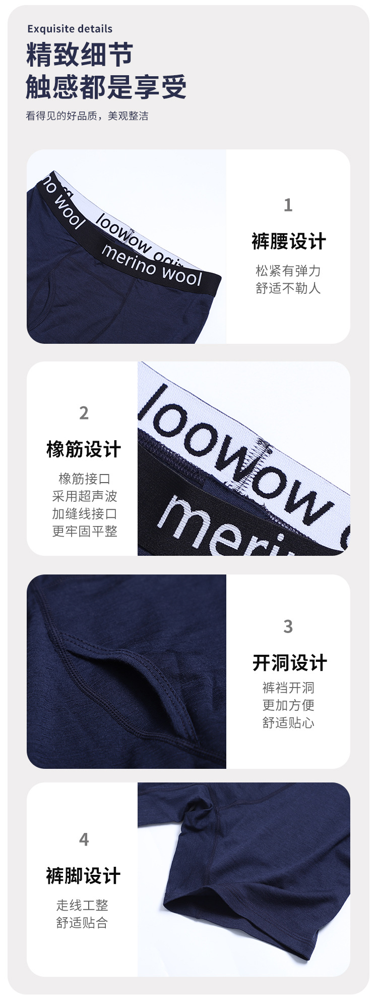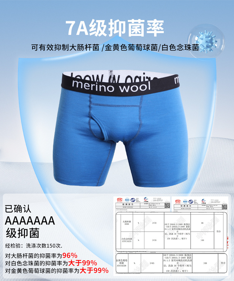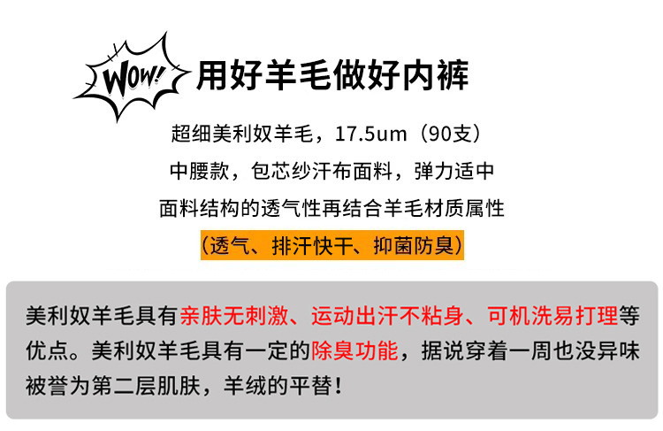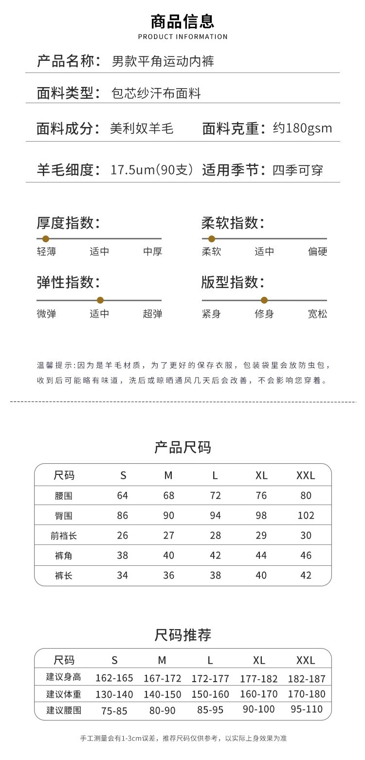 Merino wool men's sports underwear four-corner antibacterial flat underwear
