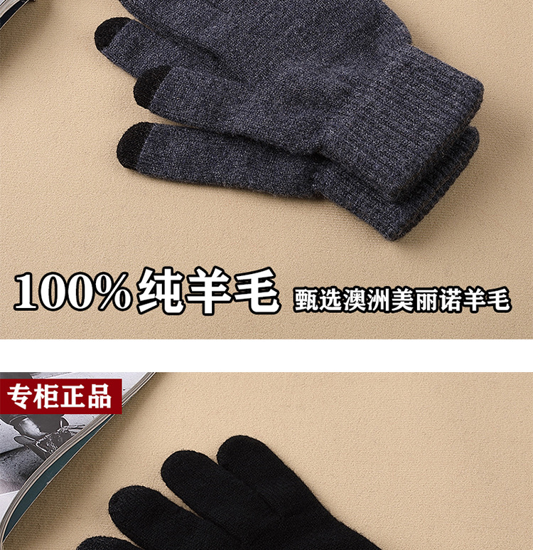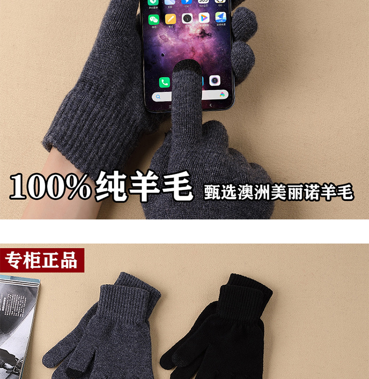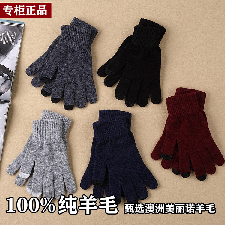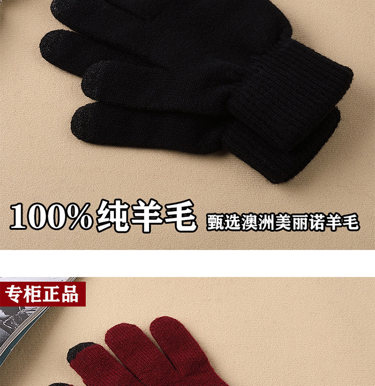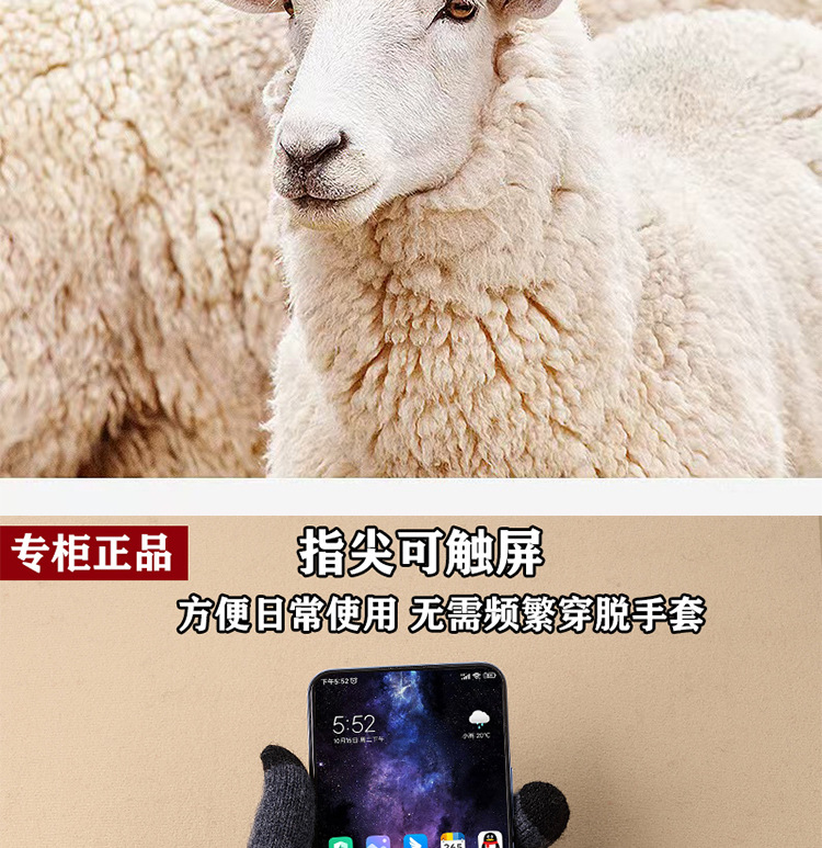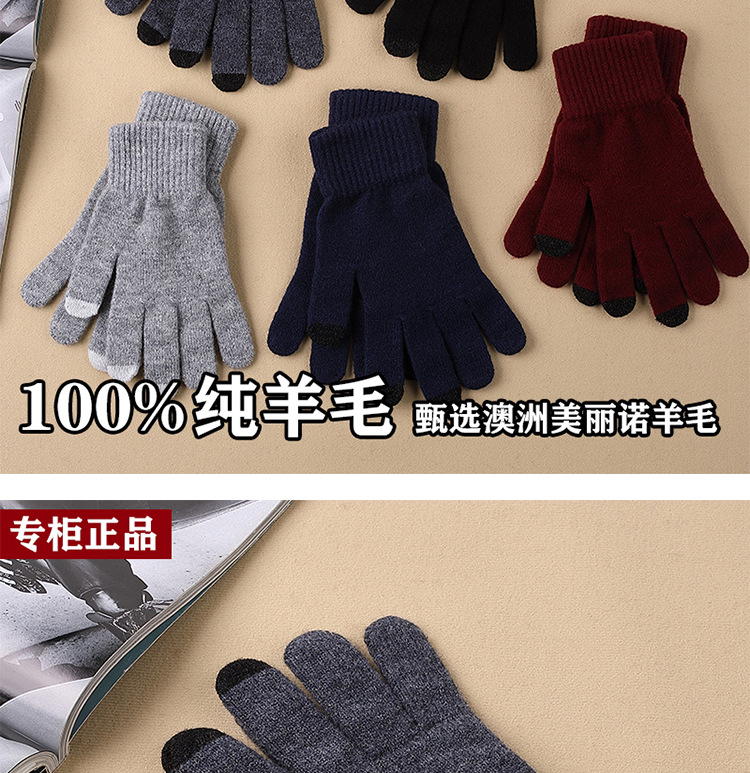 100%纯羊毛手套男女士秋冬天毛线针织加厚开车保暖手套可触屏手机