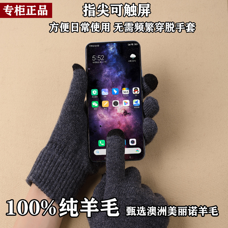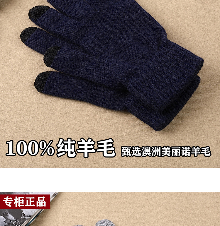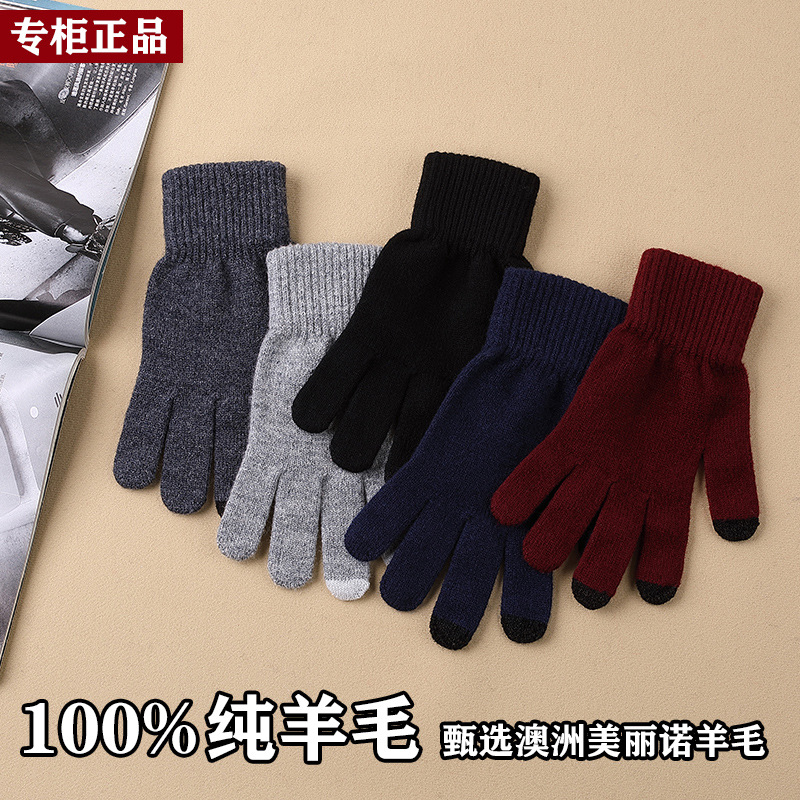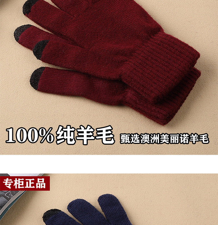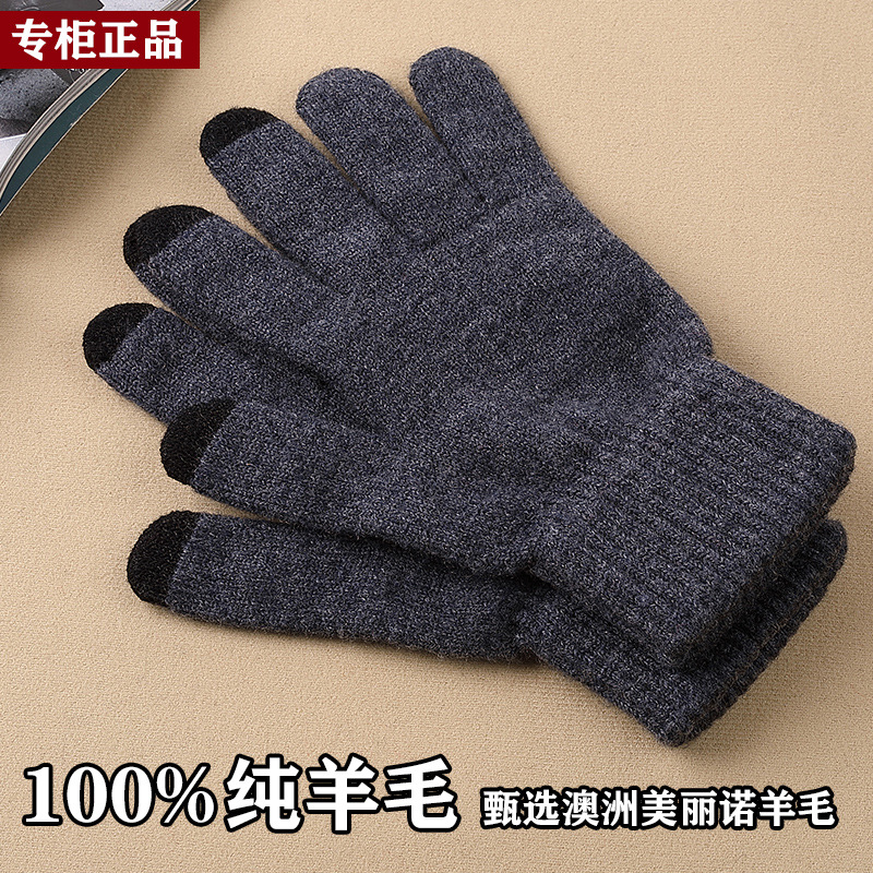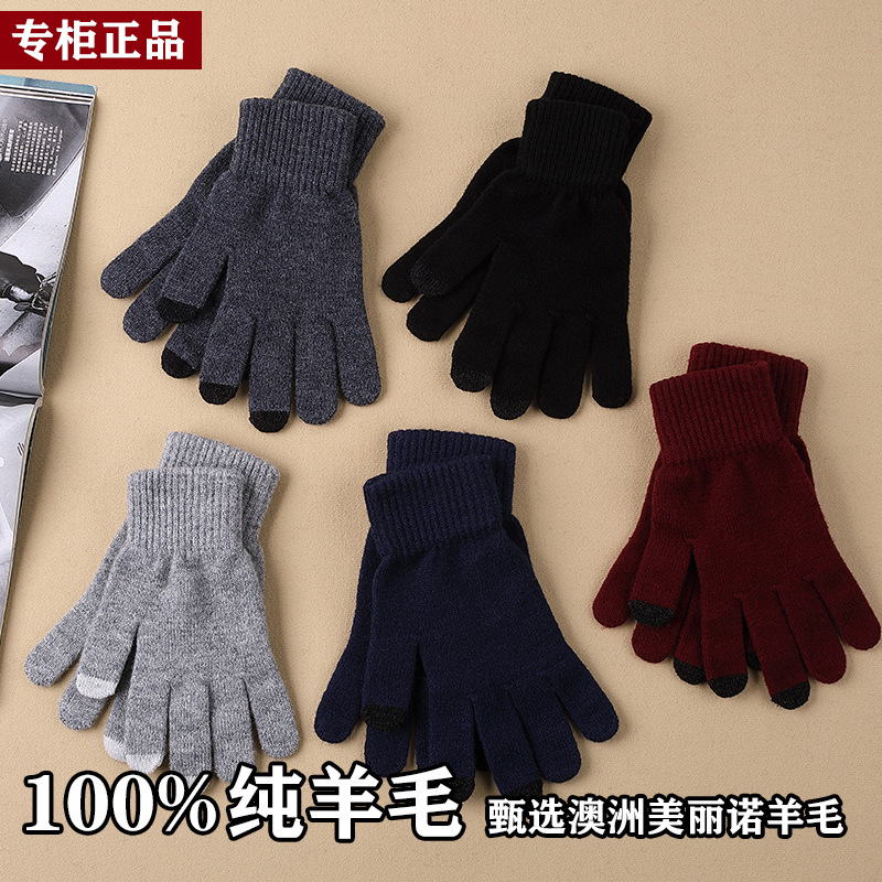100%纯羊毛手套男女士秋冬天毛线针织加厚开车保暖手套可触屏手机